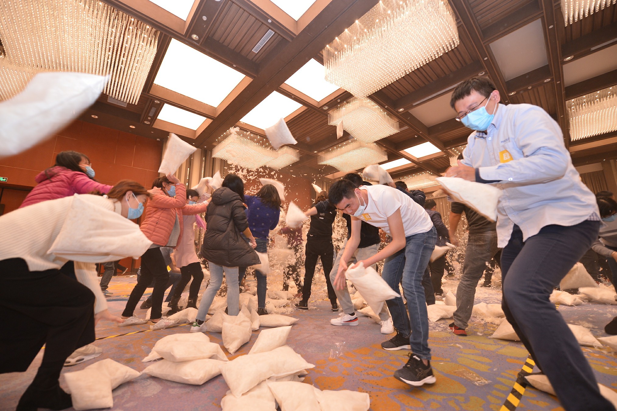 枕头大作战:原来小小的枕头也有那么多的玩法啊,真的是长见识了!!感谢“易活动”为我们带来这样一个丰富多彩的团建活动!!不仅仅让大家暂时的放下了工作的压力,也让大家在欢乐中体会到了团队的重要性!!当然最重要的还是最后的那个漫天飞舞的羽毛!!